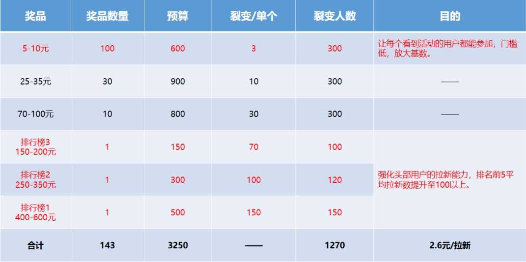 此种裂变,如“奖品设置”里所说,对奖品要做好整体的规划。